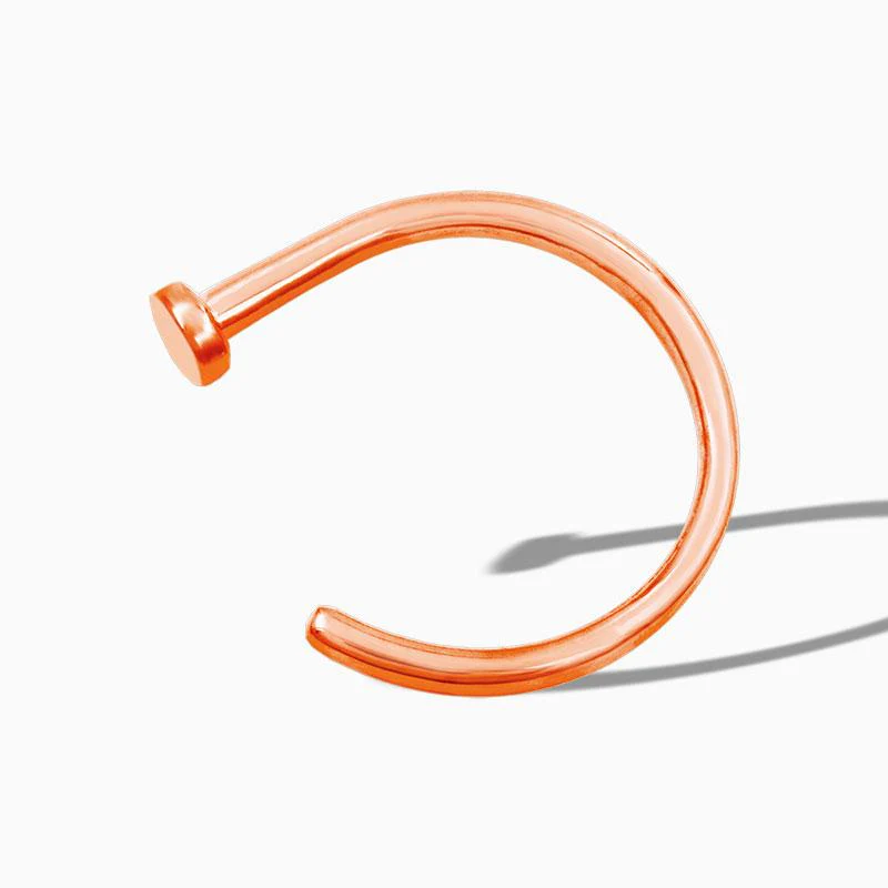 The nostril nail partial hoop is the perfect choice if you're looking for flexibility with your nose jewelry. Get the full look of a ring with the ease of removal, or flip it for a stud + half-ring look. This decorative end is available in 14 karat Yellow Gold, White Gold and Rose Gold.