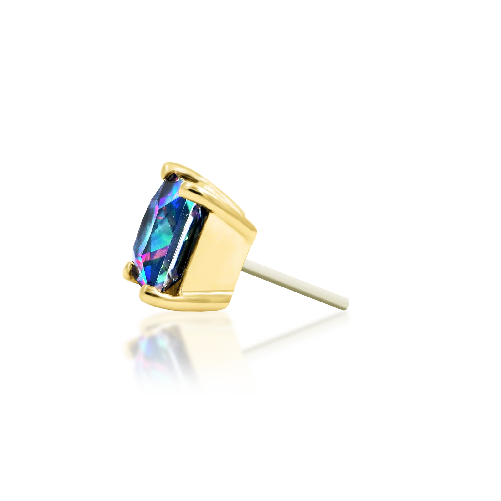 A classic princess prong with a gorgeous multifaceted mystic topaz cz.