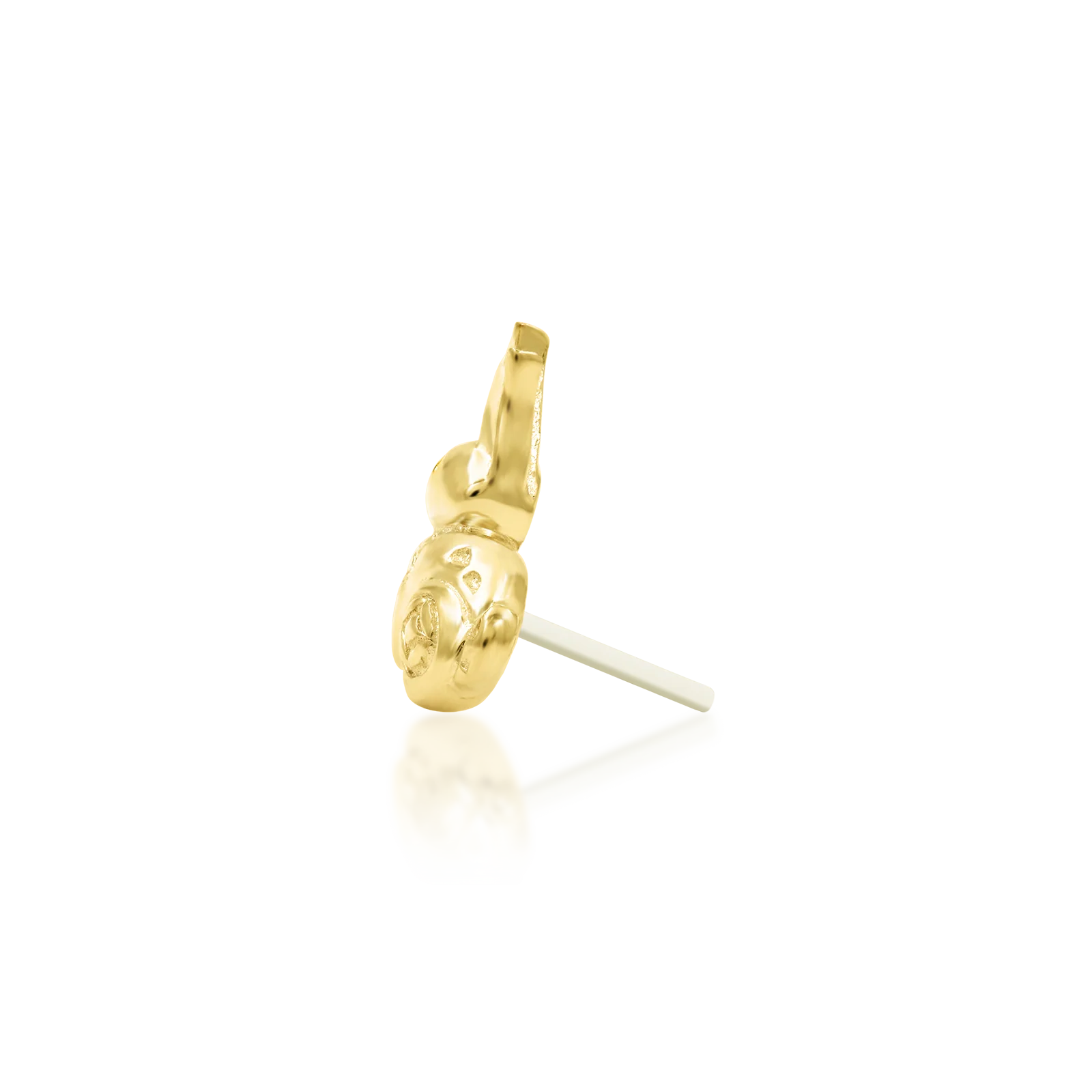 4.3mm x 6.7mm rabbit end with delicate carvings available in 14k yellow, white and rose gold.